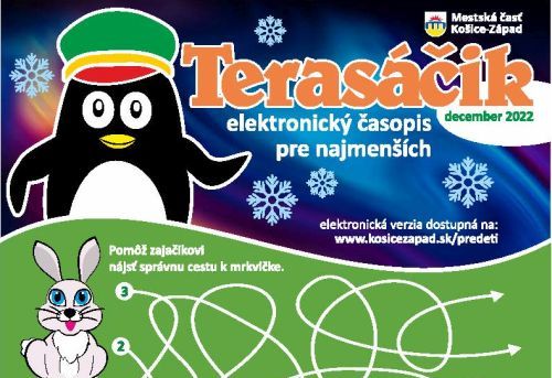 opäť sme pre vás pripravili súbor úloh, hlavolamov a vyplňovačiek na krátenie dlhých chvíľ. Decembrový Terasáčik vo veselých farbách si môžete stiahnuť tu a vytlačiť v pohodlí domova a potrápiť hlavičky malých riešiteľov. Tak šup-šup, pripravte si ceruzky, fixky, farbičky, logické uvažovanie a pustite sa do toho :-)