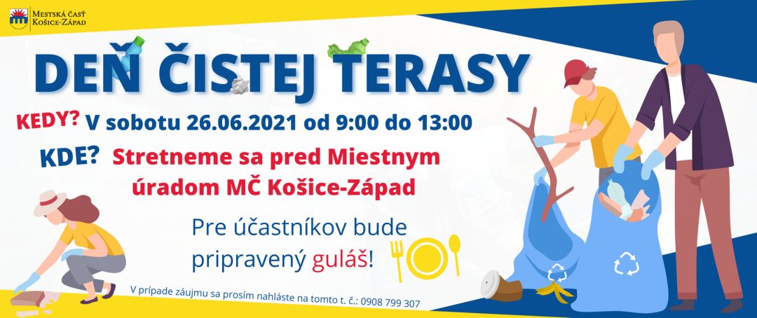 V rámci akcie nazvanej Deň čistej Terasy sa budú natierať drevené časti herných prvkov na detských ihriskách na Luníku II a prípadne aj Luníku V a zároveň sa bude zbierať odpad na zelenej ploche nad Starou sladovňou v takzvanom asanačnom pásme.