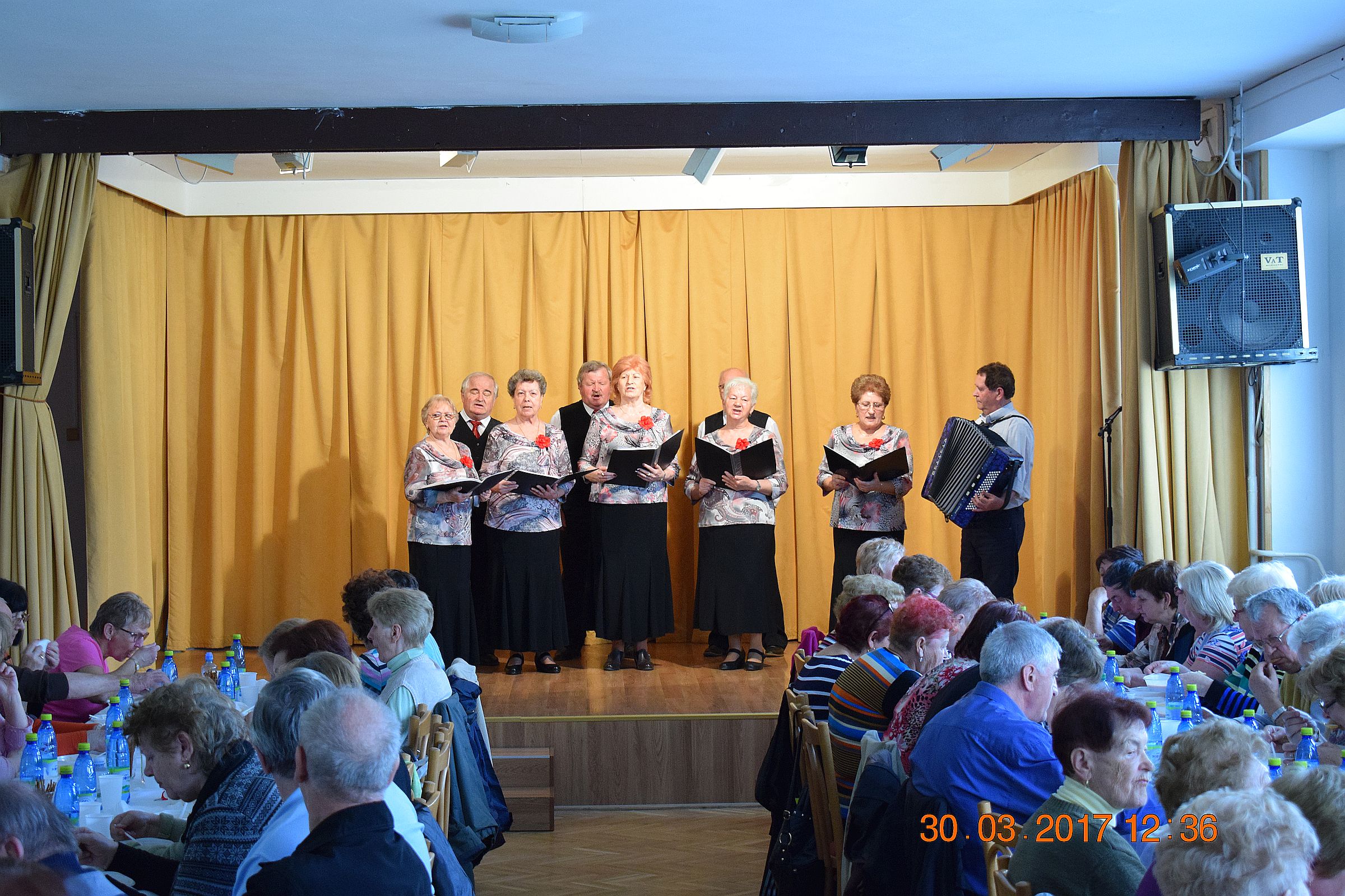Na záver pán starosta pozval všetkých zúčastnených do Átrium klubu na malé občerstvenie spestrené prednesom básni žiakmi zo ZŠ Považská, odzneli tiež známe evergreeny v podaní Františka Jóska a do nálady zaspieval spevokol Rozmarín.