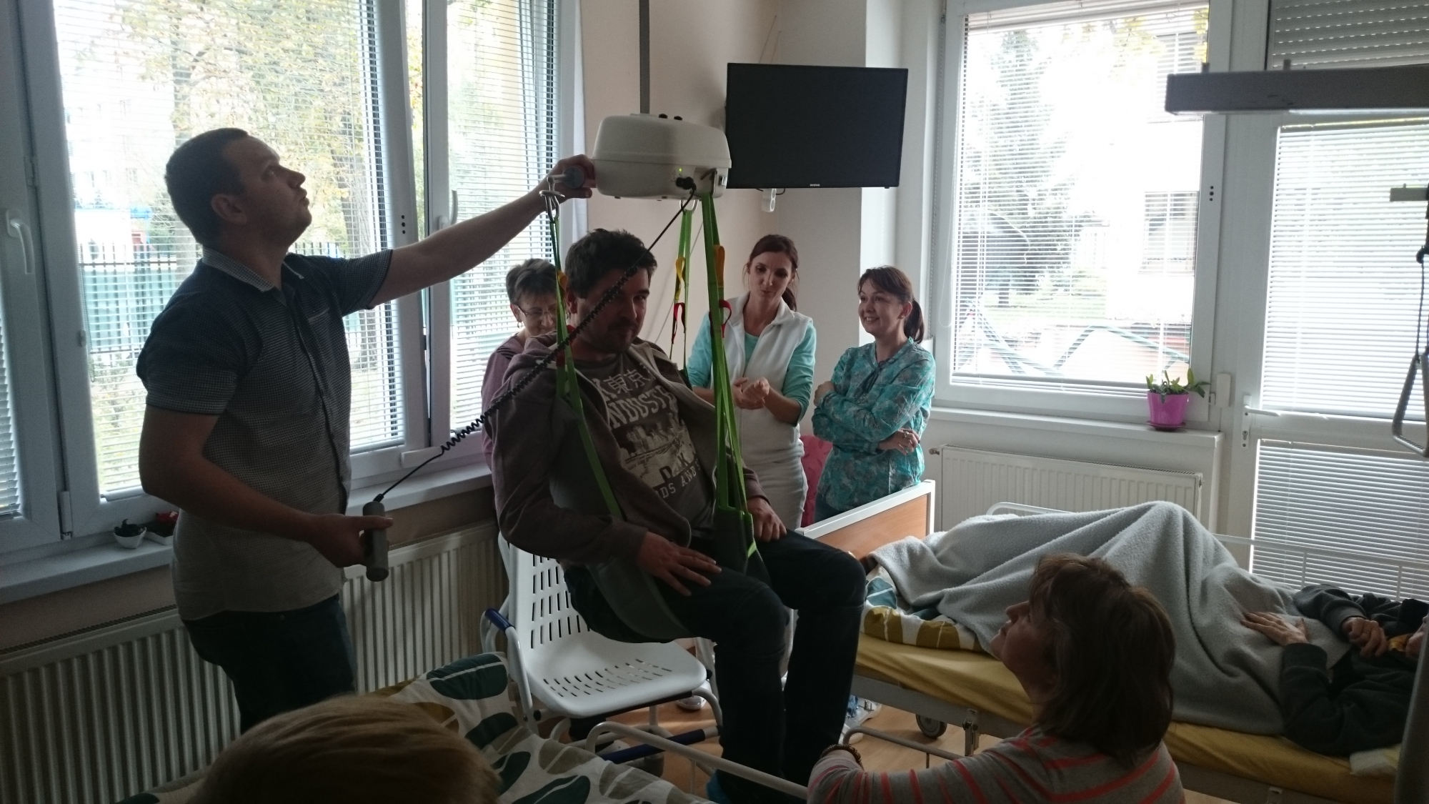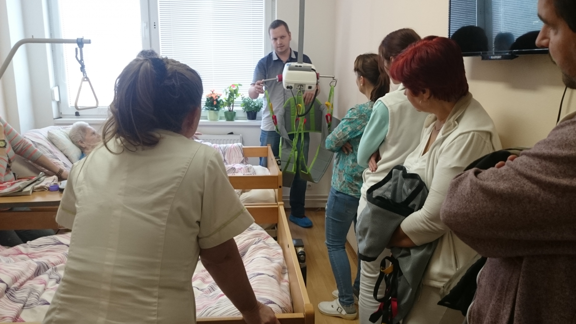 V uplynulých dňoch boli naše opatrovateľky v ZOS na Laboreckej ulici č. 2 zaškolené na používanie nového koľajnicového asistenčného systému – stropný zdvihák, ktorý umožňuje bezpečné a ľahké zdvíhanie a presúvanie klientov počas činností zahŕňajúcich opatrovateľskú starostlivosť. Opatrovateľky si tohto nového pomocníka veľmi pochvaľujú, nakoľko im umožňuje jednoduchšie presúvanie klientov z postele na invalidný vozík, stoličku, či len krátkodobé zdvihnutie kvôli výmene posteľnej bielizne.