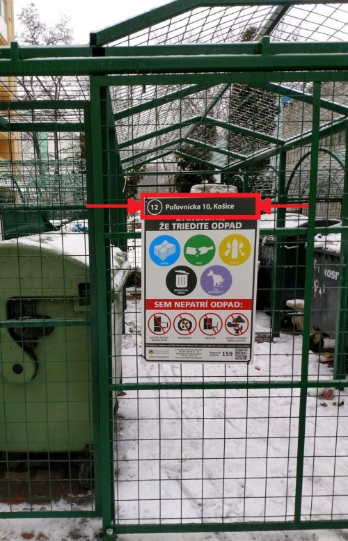 v záujme urýchlenia vybavenia Vašich požiadaviek Vás žiadame, aby ste Vaše hlásenia nedostatkov s uzamykateľnými kontajneroviskami nahlasovali s názvom predmetného kontajneroviska, ktorý nájdete na informačnej tabuli (viď vzorový obrázok).